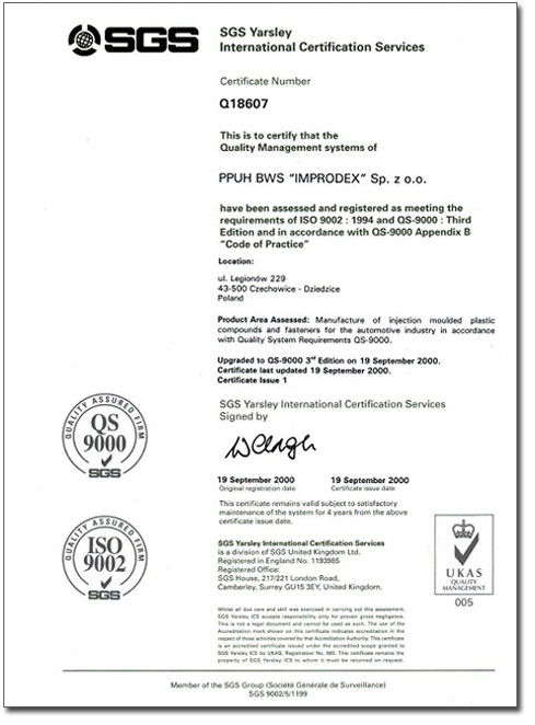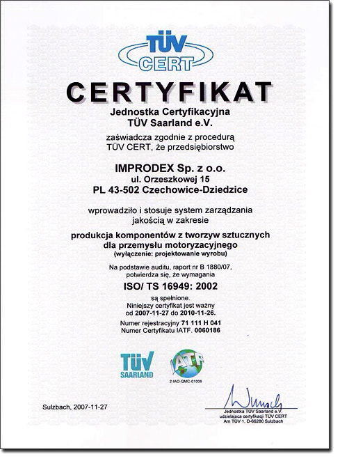 Firma wdraża certyfikat jakości QS-9000 dla branży motoryzacyjnej oraz odnawia ISO 9001:1994. Rozszerza działalność produkcyjną na inne branże. Głównym klientem pozostaje firma Gardinia, posiadająca oddziały w całej Europie.
