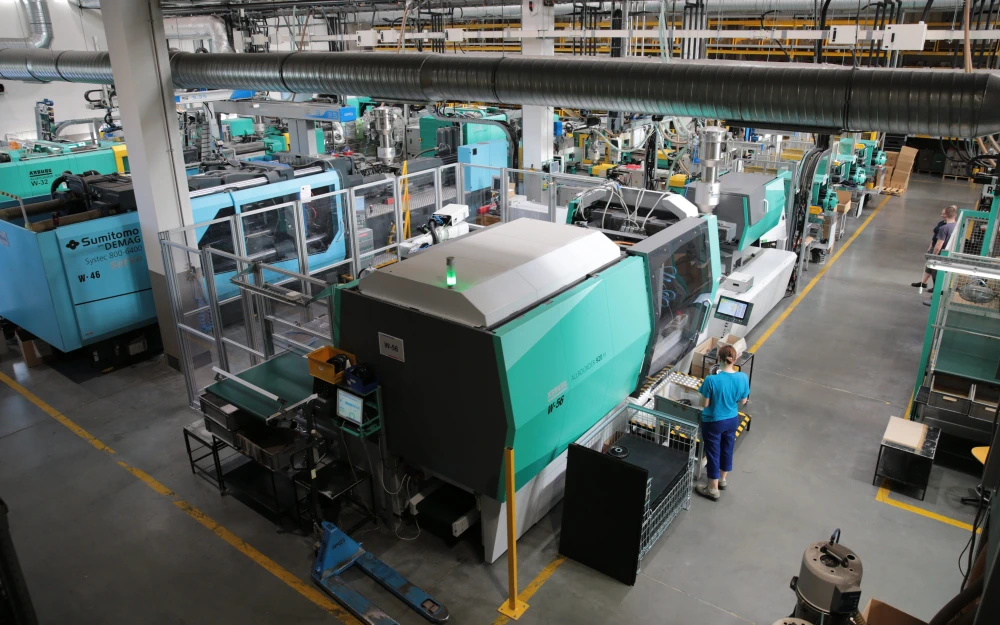 Produkcja realizowana jest na czterech halach o łącznej powierzchni 2500 m² wyposażonych w automatyczny system dystrybucji granulatu z centralnego zasypu, zintegrowany z parkiem maszynowym.